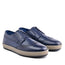 Sneaker en cuir crust bleu marine. Un lacé de style artisanal.