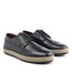 Sneaker en cuir crust noir et lacé de style artisanal.