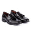 Mocassin en cuir crust, couleur Noir. Un modèle universitaire au caractère formel. Empeigne finie avec des coutures vamp et bol. pompons appliquésSemelle en caoutchouc nature.